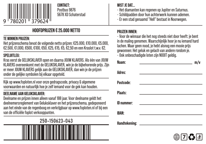 19-02-2025Gewoon top! Ontzettend leuk idee. De loten zien er supergoed uit. Net zoals de echte loten.